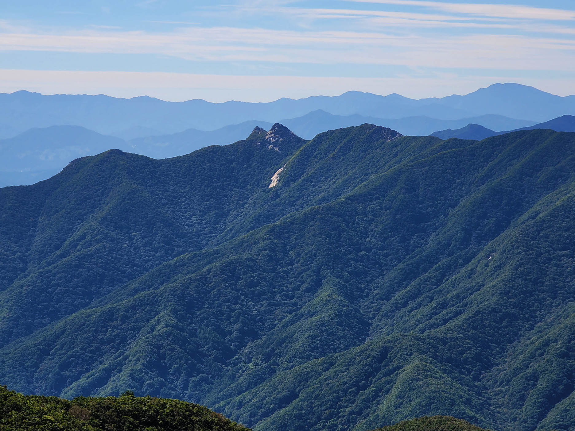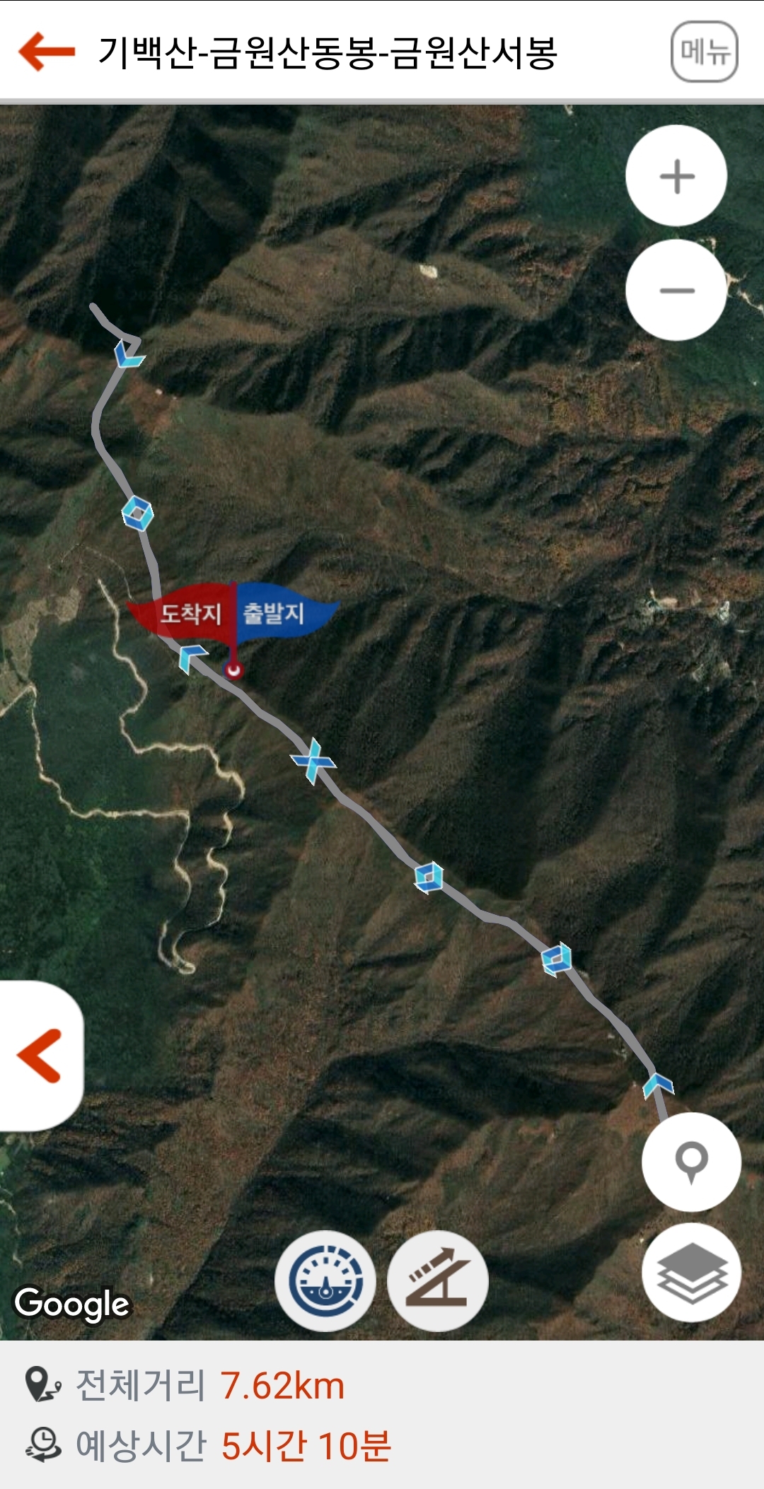 내 스마트폰 고도계로 해발 1220m 지점에서 먼저 기백산 원점회귀 왕복 및 금원산 또 원점회귀 왕복 산행을 하였다.