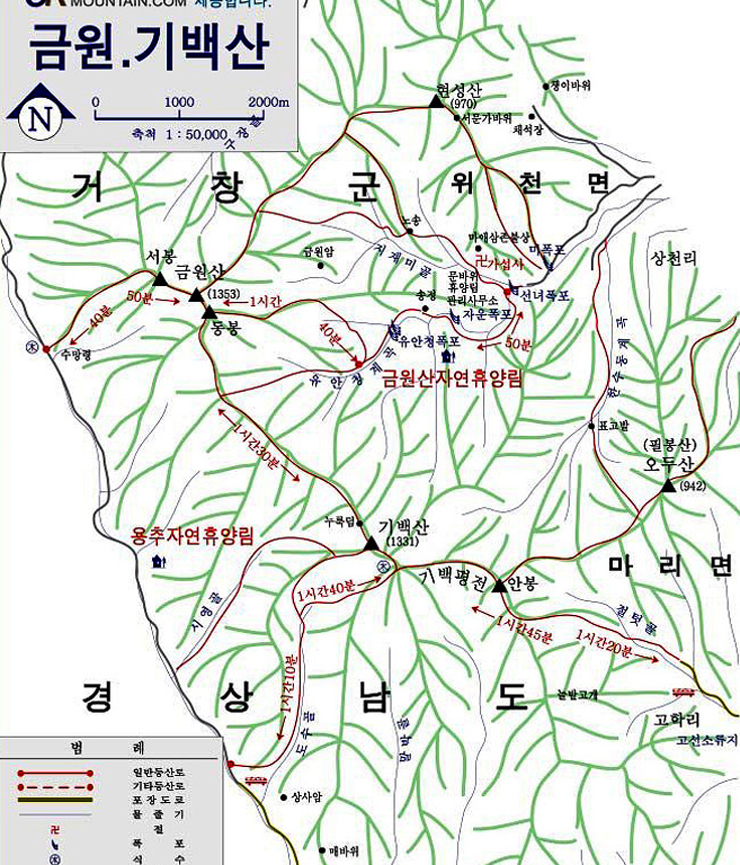 참고로 금원산과 기백산은 1300m가 넘는 고도이고 군립공원으로 지정되어 있지만