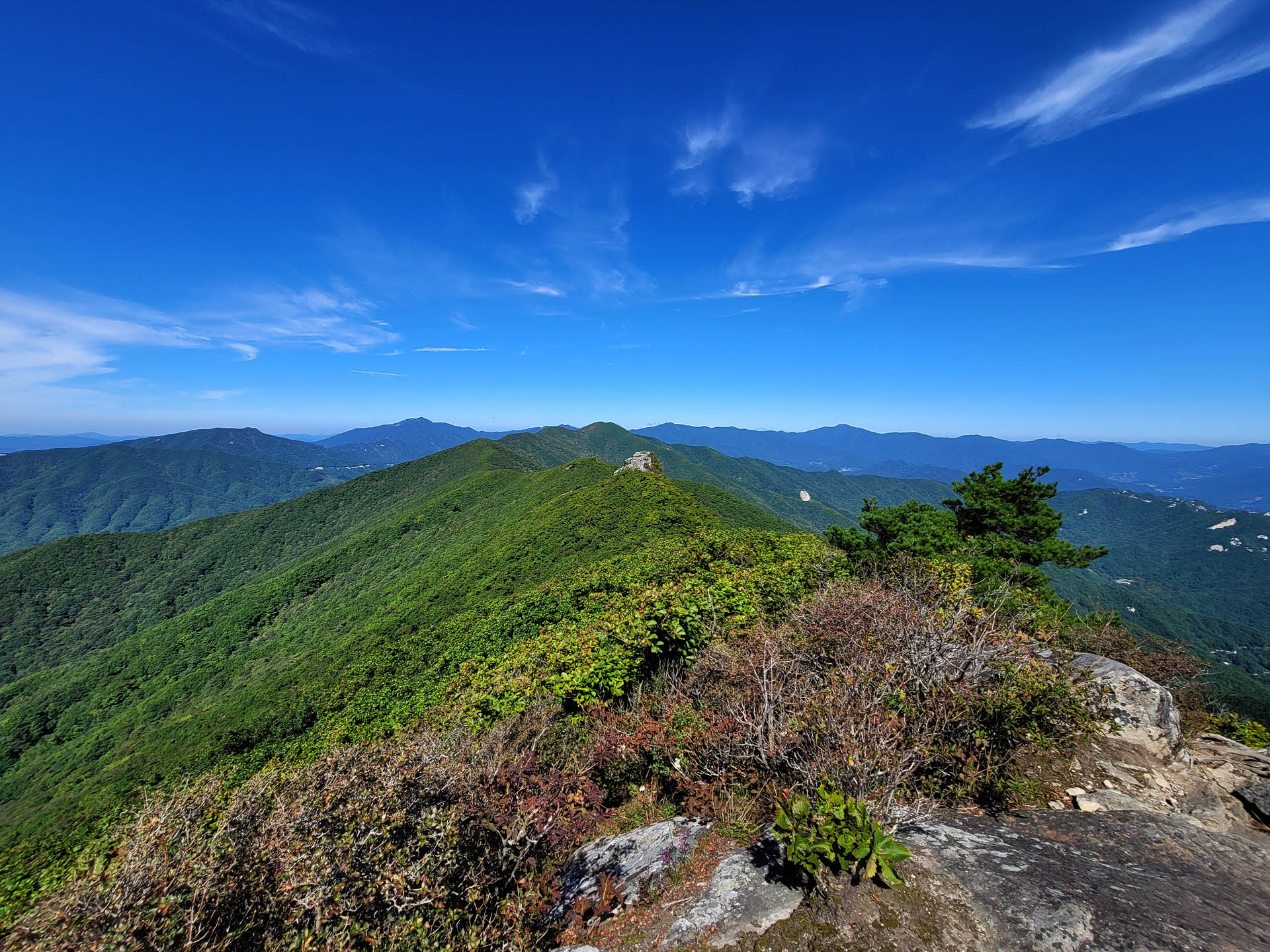 평범한 육산으로 오르기는 수월하고 정상 능선부에 올랐을 때 주변의 조망이 뛰어나기 때문에