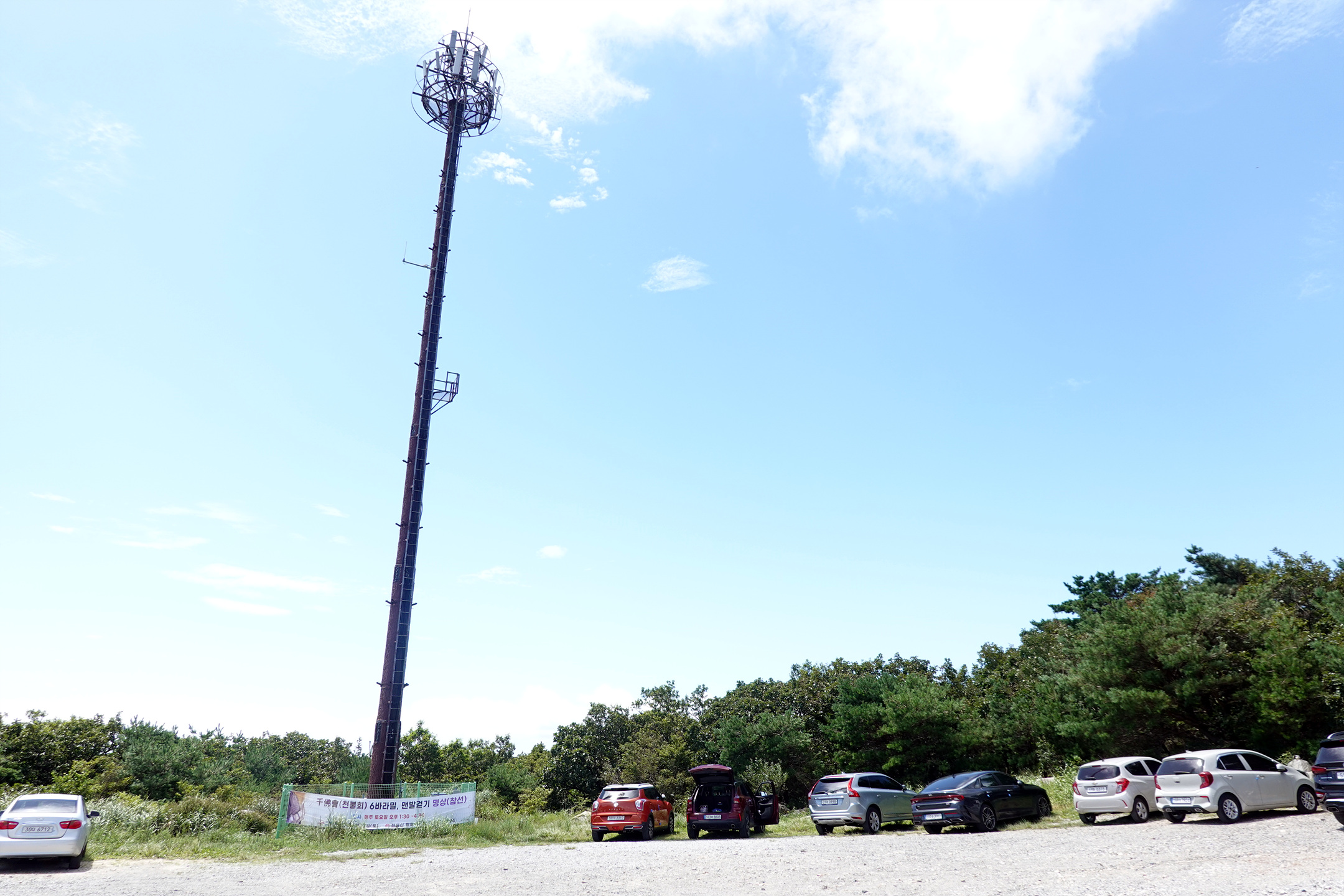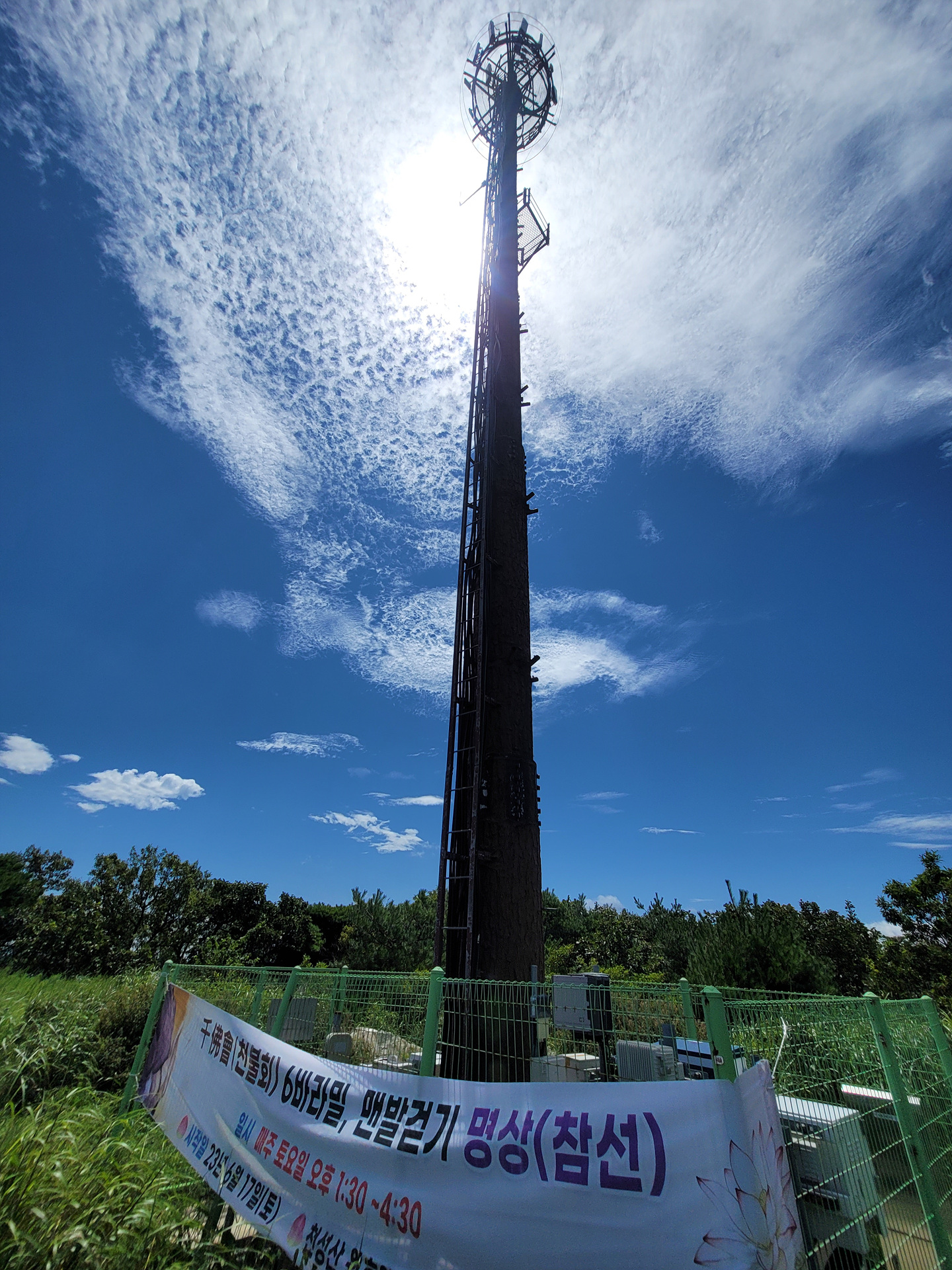 원효암 입구 주차장에 설치된 휴대전화 중개탑...맑은 하늘이 눈부시다.
