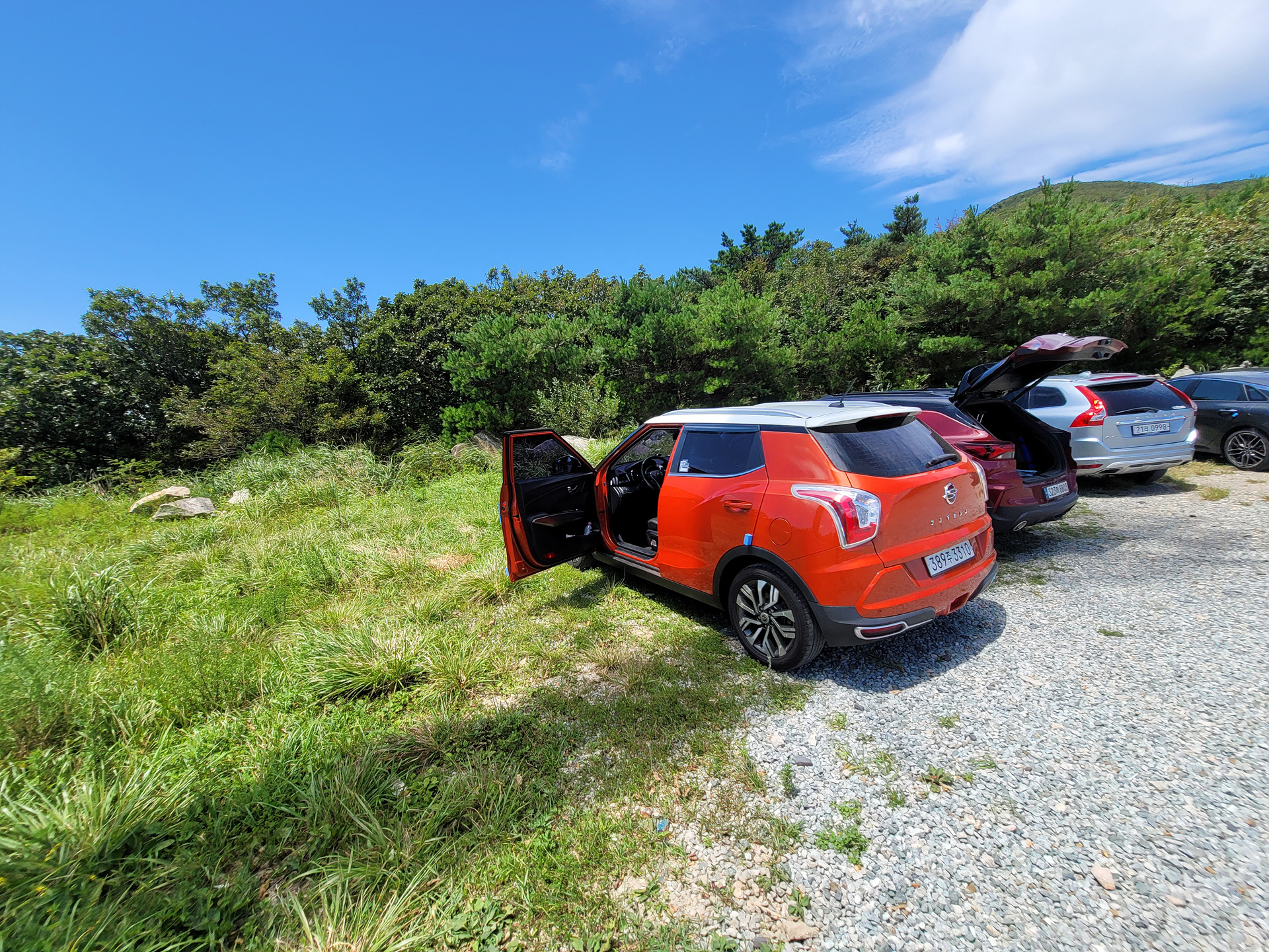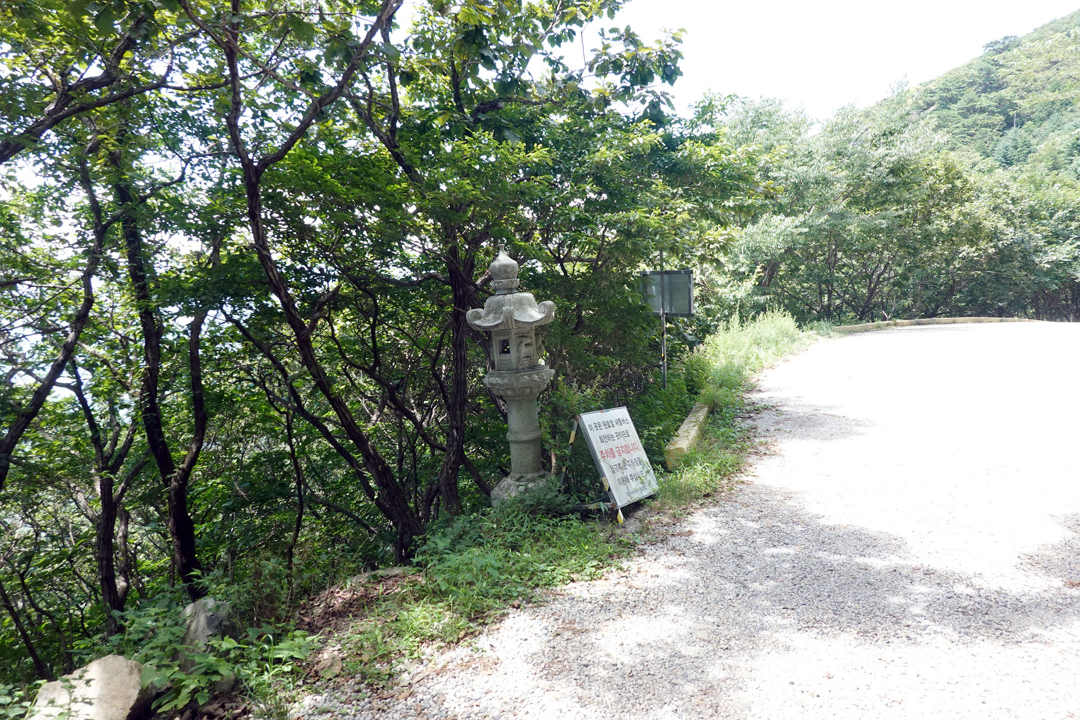 자동차(자가용)를 이용하여 포장된 임도로 오를 수 있으며(길은 좁다),