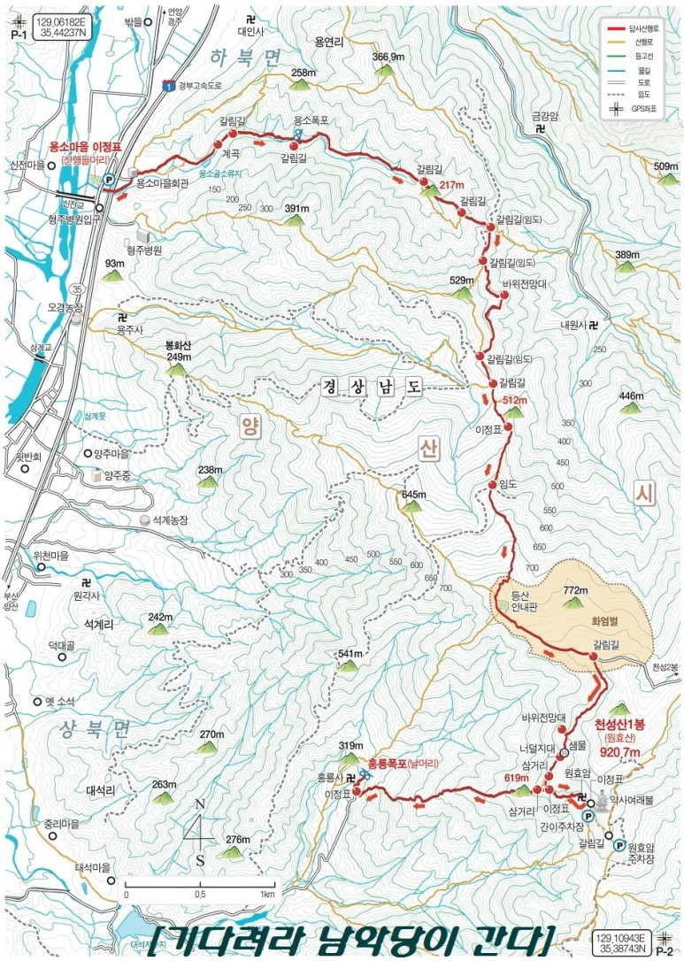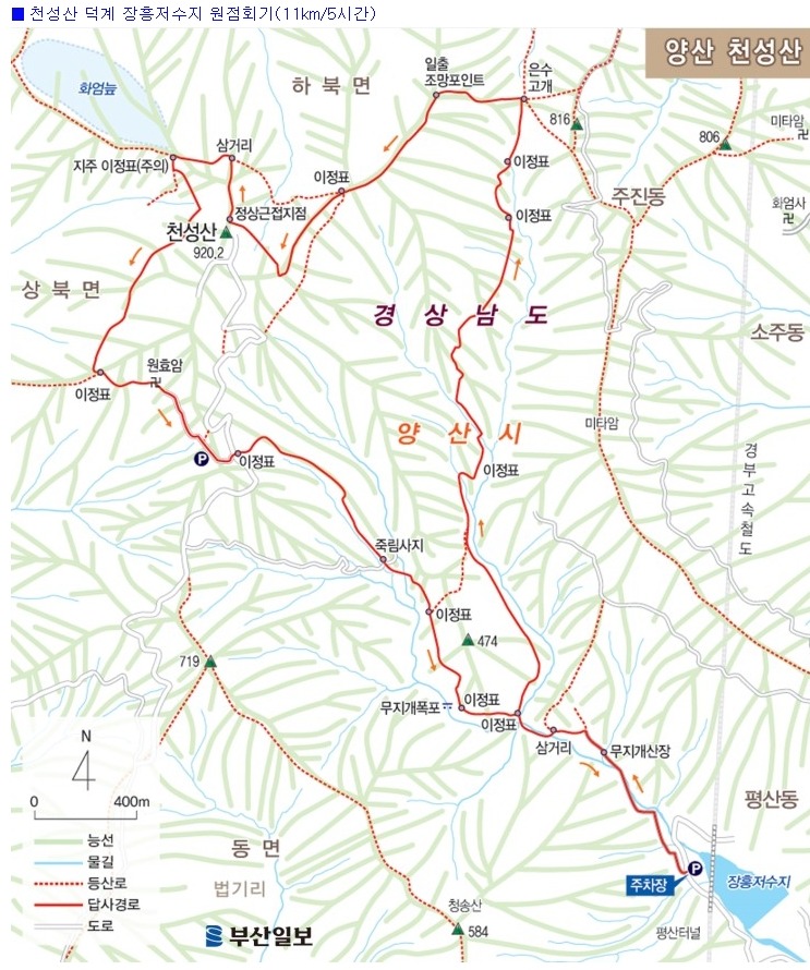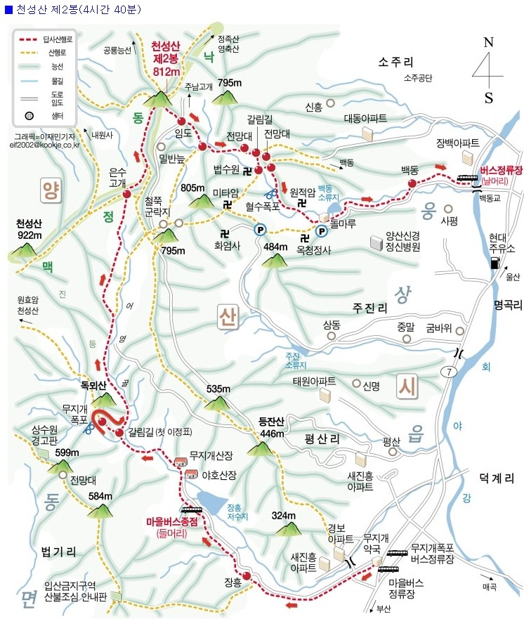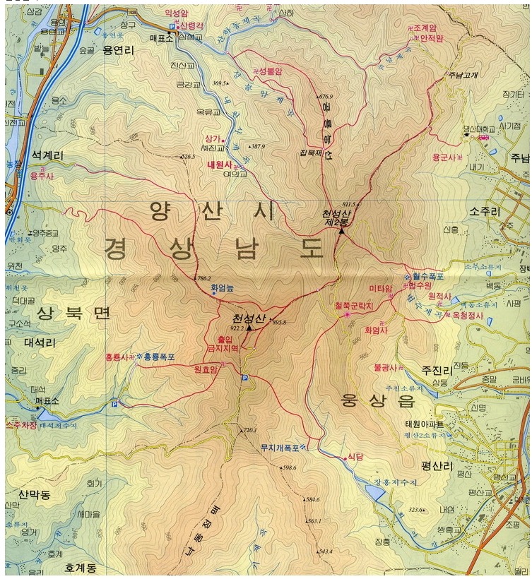 양산 천성산 조망산행(100대 명산, 천성산 등산지도)