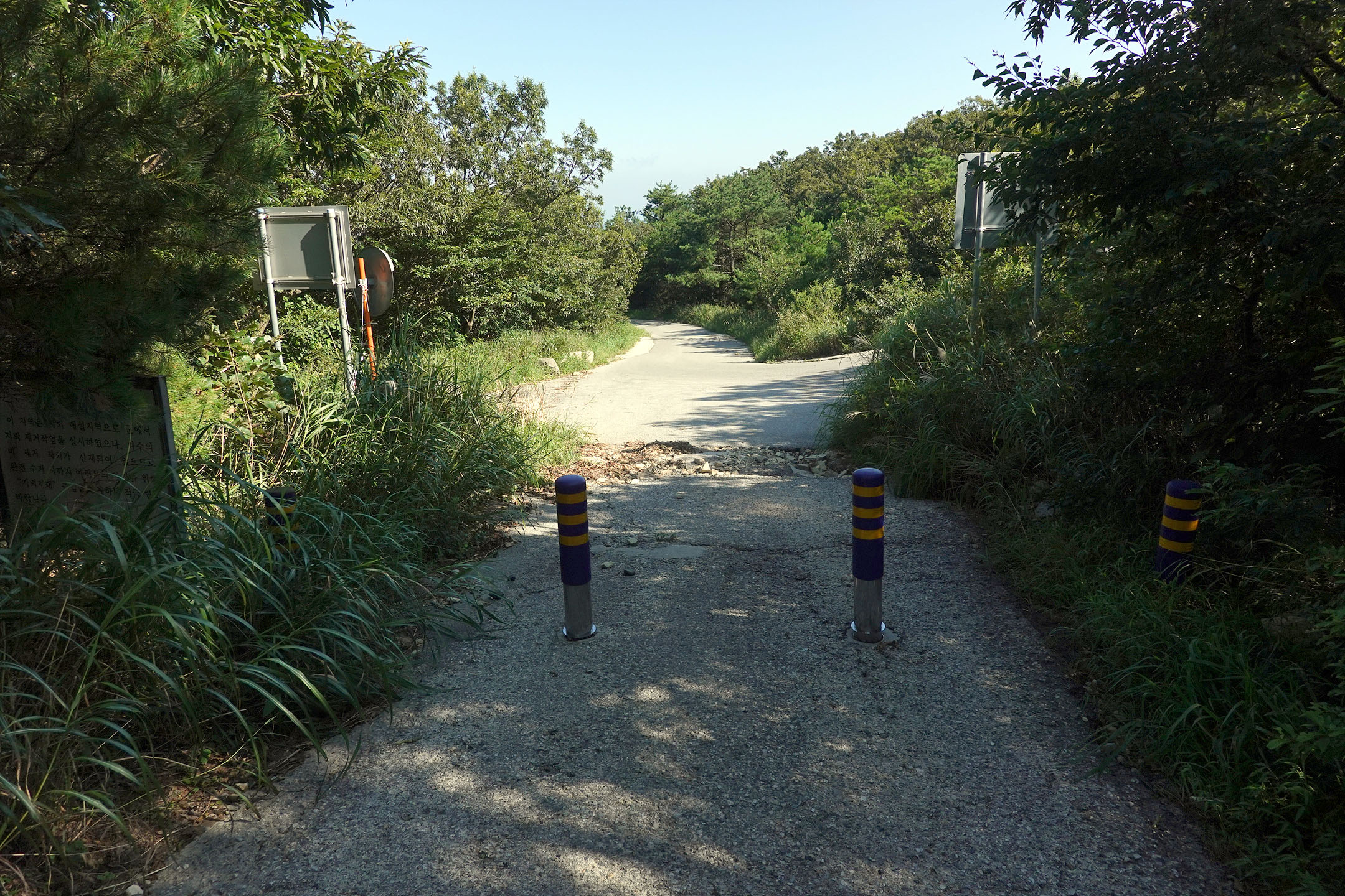 동쪽의로 이제는 폐쇄된 정상부 옛 군부대로 도로를 이용하면 1.5km 정도 거리에 고도차이로 170m 만 오르면
